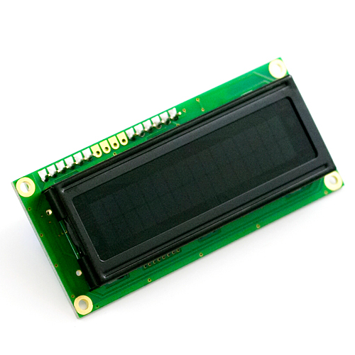 Basado en el conocido HD44780. Muestra 2 lineas de 16 caracteres blancos con fondo azul. Tiene interface paralela manejable con 7 pines GPIO para el modo 4-bit o 11 pines GPIO para el modo 8-bit.