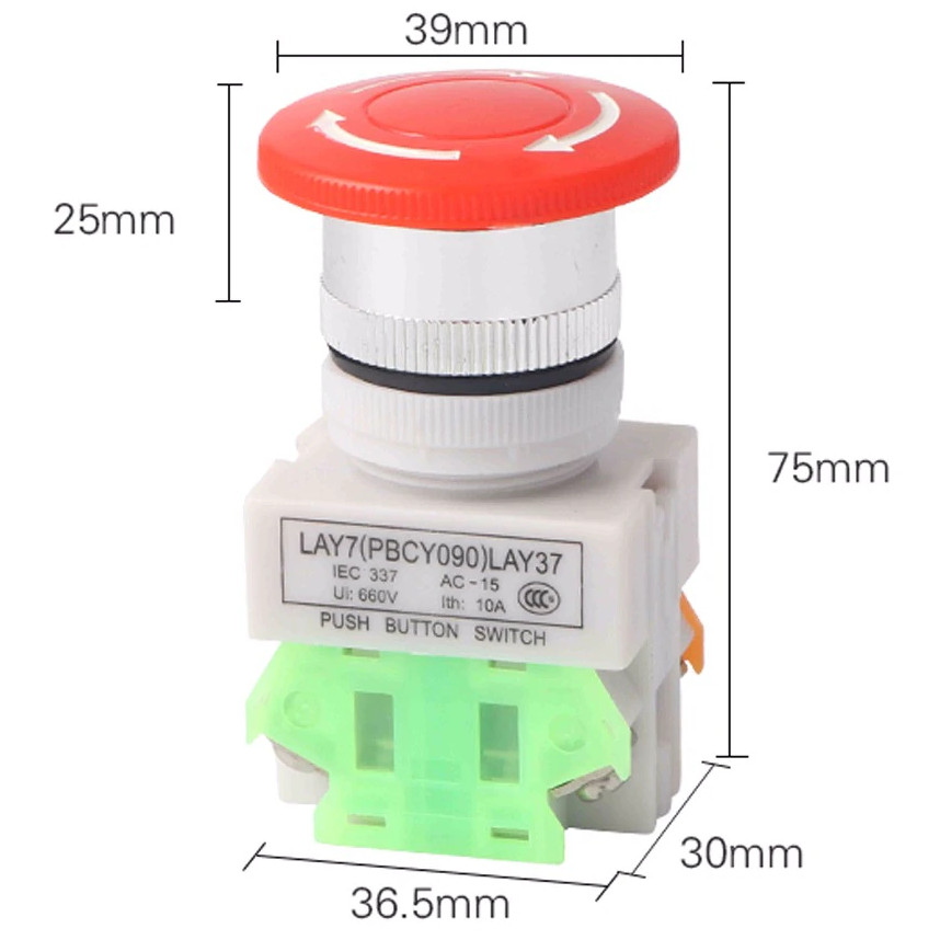 Interruptor de botón de encendido 220 22mm LAY37-11ZS V 1NO 1NC cabeza de seta parada de emergencia autobloqueo |